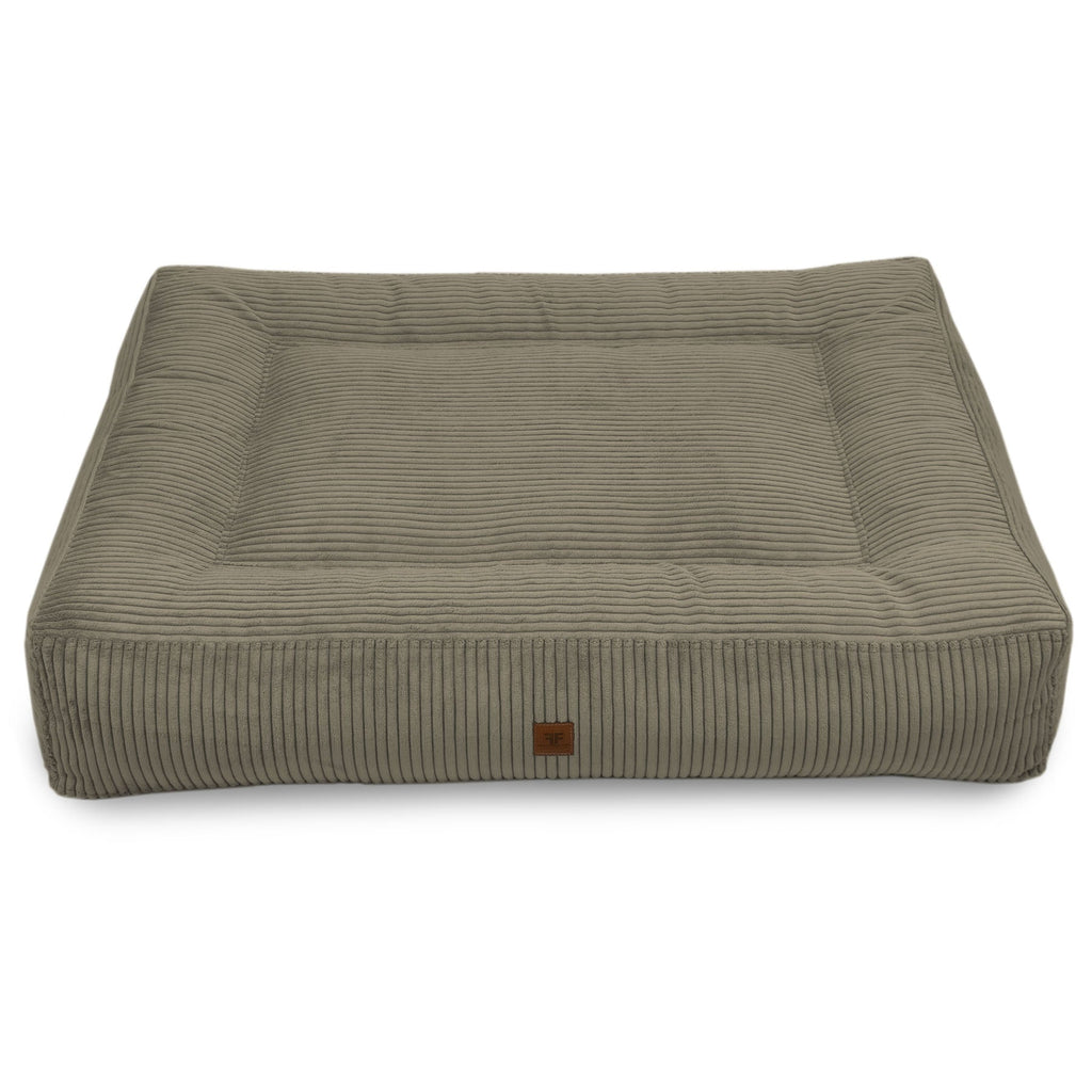 Schlichtes und elegantes Design Hundebett Letto in der Farbe "Cord Pistacchio" mit waschbarem Bezug. Dank des Zwei-Kammern-Systems und formstabilen Innenlebens mit Memory Effekt liegt sich das orthopädische Hundebett auch nach langjähriger Nutzung nicht durch.