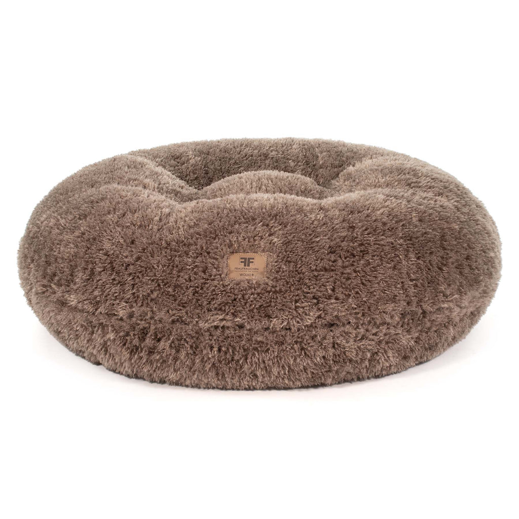 Eine Beimengung von Kaltschaum sorgt dafür, dass das bis zu 40 cm hohe, kuschelige Hundebett nicht nur herrlich weich, sondern auch zuverlässig formstabil ist. Mit seiner runden Form gibt das Kissen dem Hund das wohlige Gefühl eines sicheren Nestes. Wusstest Du, dass 78 Prozent der Fellnasen unter Angst- und Stress-Zuständen leiden? Das kuschelige Wolke-Nest hilft, Stress abzubauen. Der Schutz und Geborgenheit vermittelnde Rand hindert den Hund allerdings nicht daran, sich wohlig auszustrecken oder auf dem Rücken zu liegen.